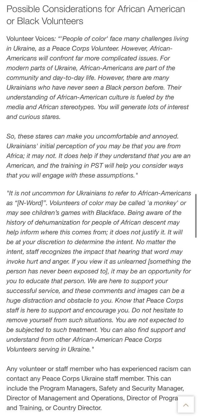 You are the exact opposite of what the Peace Corps is asking their members to be. Hear the offensive word and you go on a rage fueled violent rant about how racist they are being instead of taking a deep breathe, looking at the situation and realizing they only use the word because it is the only one they know. Simply taking the time to inform them of how hurtful the word/imagery is without being a salty bitch about it is how fences are mended.